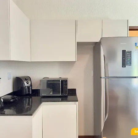 A pousada Reserva BeachFront - Retirinho está equipada com refrigerador, forno e artigos de vidro numa cozinha.